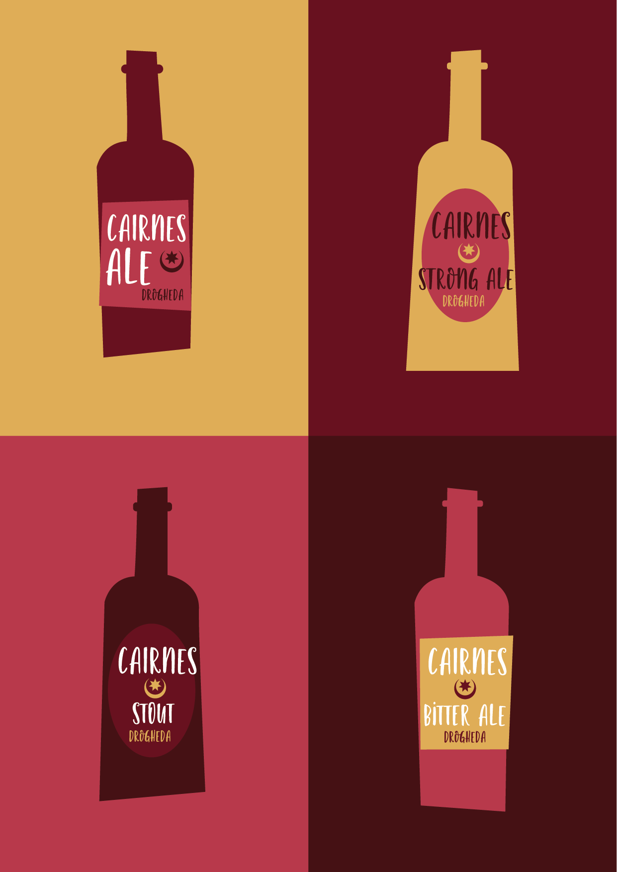 Quirky illustrated poster with Drogheda's Cairne's Beer, featuring a modern twist on the classic ales and stouts from the famed Drogheda brewery.