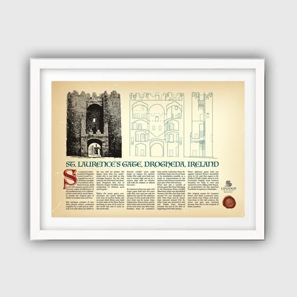 A fascinating information poster about St. Laurence's Gate in Drogheda. Choose either a standard digital print, or a premium giclée art print.
